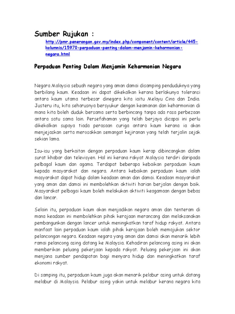 Artikel Bm Kepentingan Perpaduan Kaum Pdf