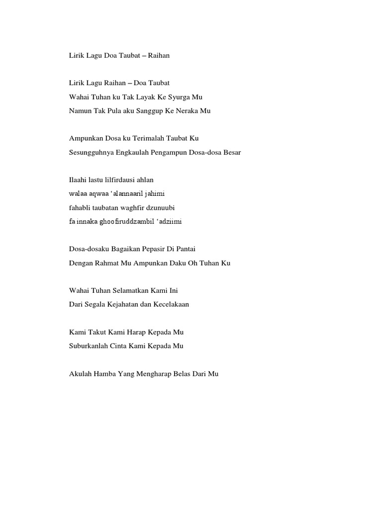 Raihan I Tiraf Doa Taubat Songs Lyrics Doa